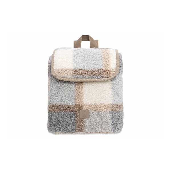 Ce sac à dos bouclé est-il cool ? Les tons froids de l'imprimé à carreaux bouclés sont complètement tendance cet hiver et la couleur biscuit des anses complète le sac. Vous pouvez fermer le sac en toute sécurité grâce au cordon de serrage. Ne peux-tu pas voir ta/ton mini briller avec ça ?