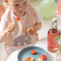 Elphee éclabousse de l'eau dans cette assiette pratique pour enfants dans une douce nuance de bleu. L'assiette a une surface mate et soyeuse et est assortie au reste de la collection Kiddish.