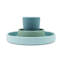 Une assiette Croco bleue, un bol nuage vert et un mini mug bleu foncé font de ce set de repas pour enfants une idée de cadeau parfaite pour les petits mangeurs.