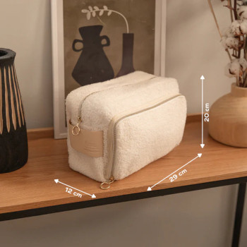 Avec son tissu bouclette doux, ses zips dorés et sa anse en simili cuir, elle allie style et praticité. Son intérieur déperlant assure une hygiène parfaite et un entretien facile.