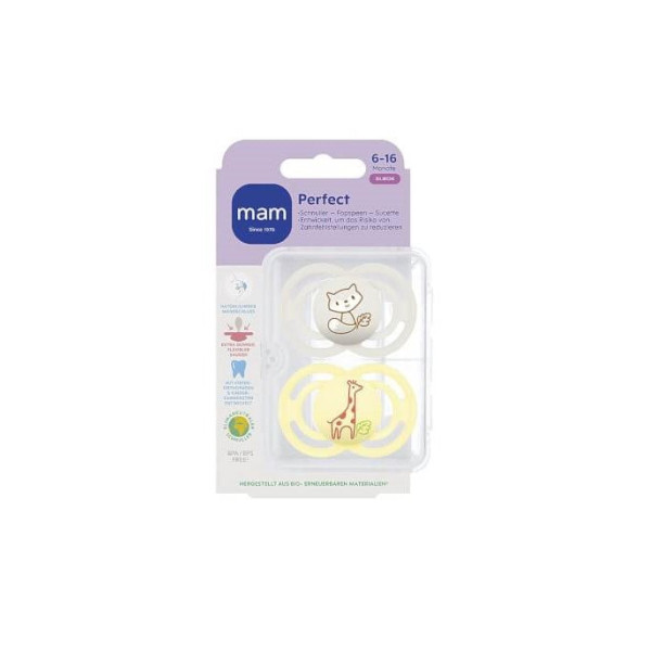 La tétine orthodontique unique Mam Perfect aide à réduire le risque de malposition dentaire et permet à la bouche de se fermer de manière plus naturelle. Elle est 60 % plus fine et 4 fois plus souple que les tétines de sucettes ordinaires.