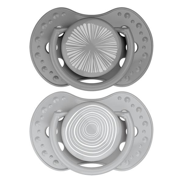 Harmony est une collection qui fait référence à des tendances telles que le minimalisme, la tranquillité et la connexion avec la nature. La collection se compose de tons terreux doux et d'imprimés sophistiqués. La partie ventouse de la sucette est dynamique et se compose de plusieurs couches de silicone d'épaisseur variable. Grâce à ces couches, la partie supérieure de la partie suceuse se déplace au rythme de la succion naturelle.