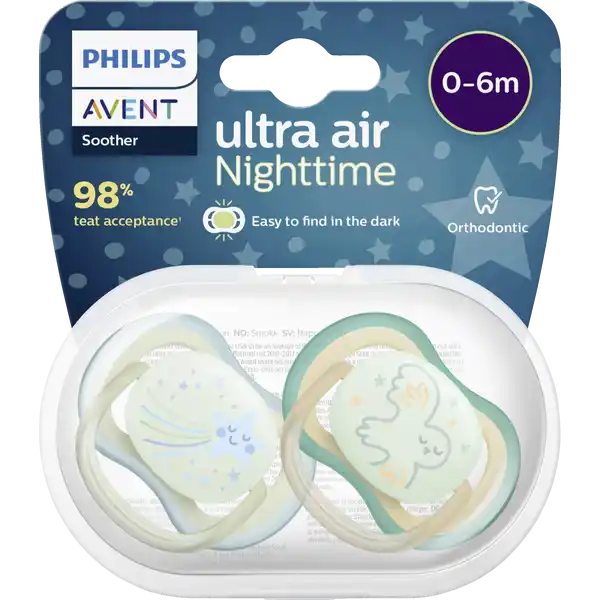 Grâce à l’écran lumineux de la tétine Ultra Air, vous pouvez rapidement trouver la tétine de votre bébé sans avoir à allumer les lumières.
