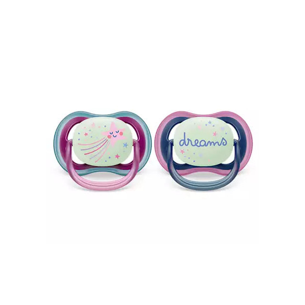 La pastille phosphorescente de la sucette ultra air vous permet de la retrouver rapidement sans avoir à allumer la lumière.