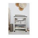 Son design compact permet d’optimiser l’espace disponible dans la salle de bain, et les deux grandes étagères offrent un rangement pratique pour avoir toujours à portée de main les produits de soin, serviettes ou housses de matelas à langer.