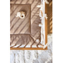 Ce tapis de parc offre à votre enfant une surface de jeu douce et agréable, idéale pour jouer, se reposer ou découvrir son environnement en toute sécurité. Son extérieur en tissu côtelé procure un toucher délicat et raffiné, tandis que son intérieur en teddy moelleux enveloppe bébé dans une chaleur réconfortante.