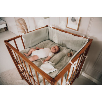 Grâce à ses cordons de fixation, le tour de parc/lit se fixe facilement et solidement aux barreaux, assurant ainsi une installation stable et uniforme. Il est conçu pour rester en place, offrant une protection optimale et un confort inégalé à votre enfant.