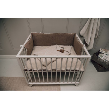 Le look naturel et apaisant du tissu Faro crée une atmosphère tranquille et cosy dans la chambre de bébé. Ce tissu est doux, respirant et absorbant, fabriqué à 100 % en coton, offrant une sensation agréable au toucher. Plus il est utilisé, plus il devient doux et beau, garantissant une longévité et un look intemporel. Idéal pour un tour de parc/lit qui combine praticité et élégance.