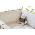 Entourez votre parc de douceur et protégez bébé des petites bosses grâce au tour de parc confortable et élégant. Pratique, le joli tour de parc épouse parfaitement les contours de votre parc en bois et se fixe facilement à l'aide de liens.